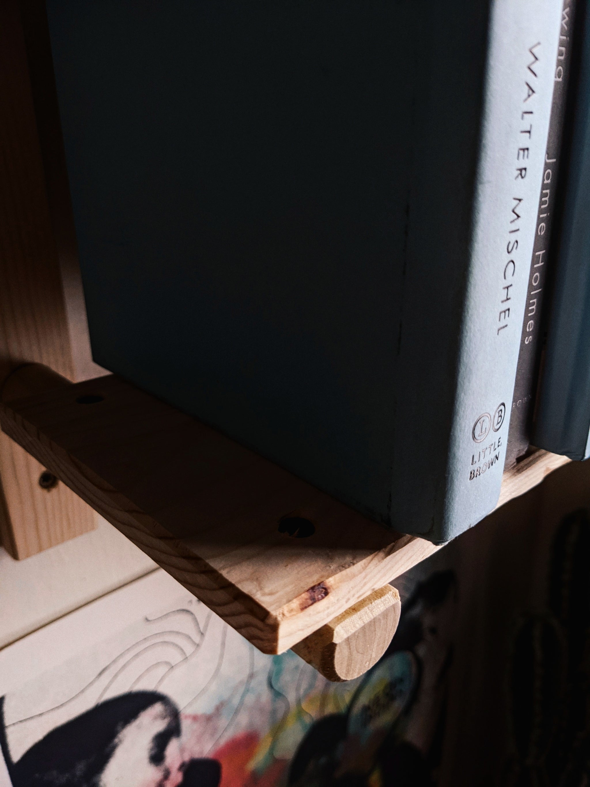 Manufactured particle board shelves that are bonded together with heat and chemicals that off-gas into your home.